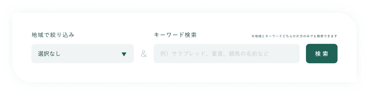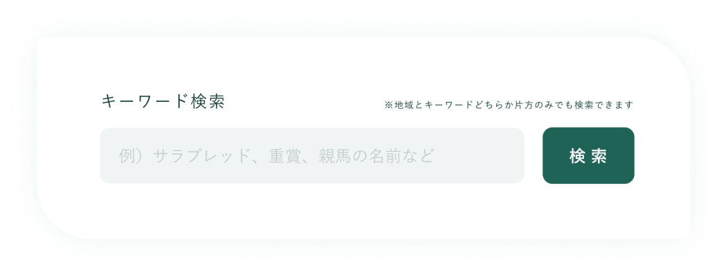 ・キーワード検索・・・馬の名前、品種、重賞など、関連するキーワードで検索することができます。